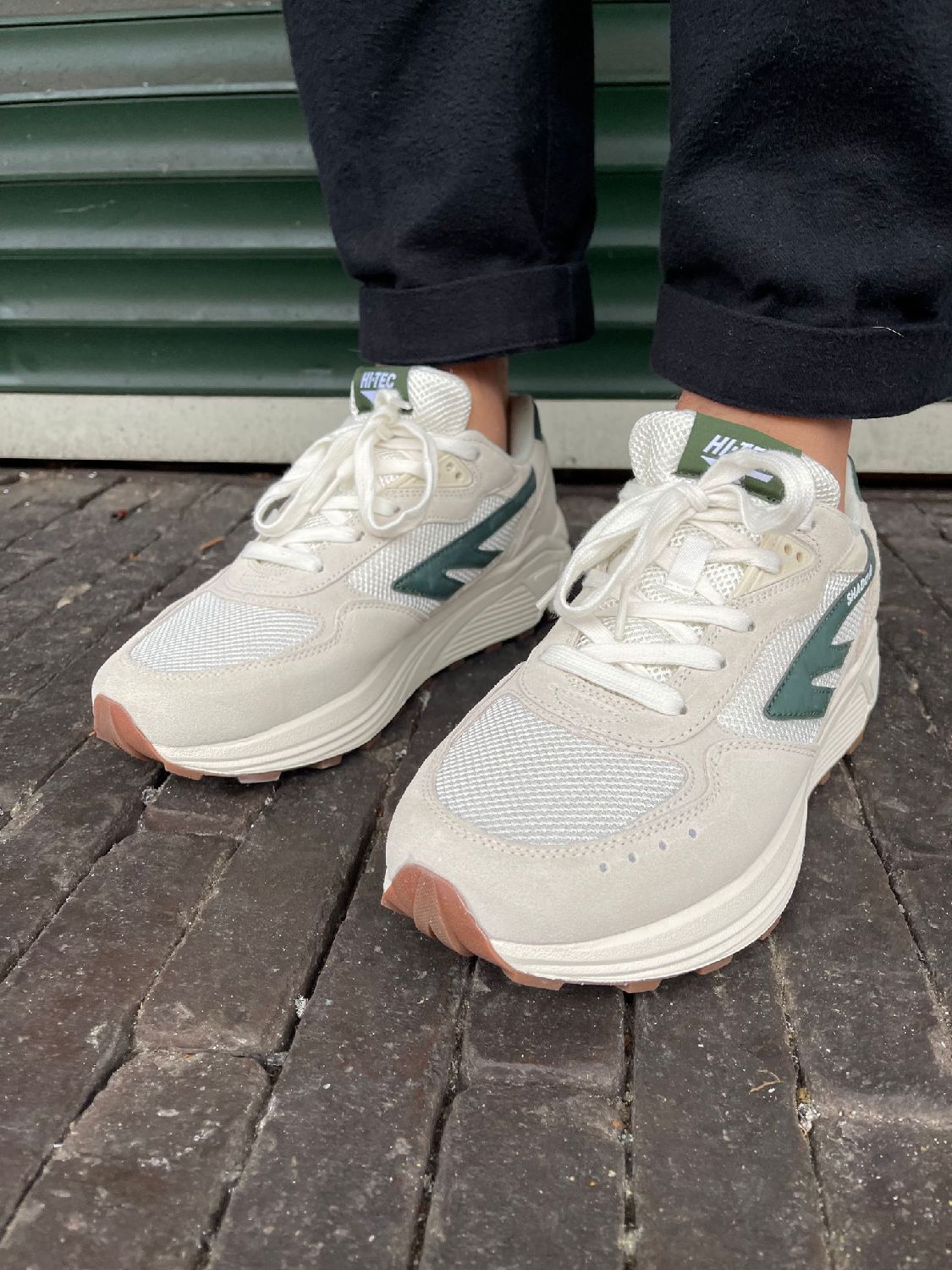Hi Tec sneaker HTS Shadow RGS in de kleuren Offwhite en donkergroen. De schoen valt goed op maat. Als u vragen over het product heeft, kunt u altijd contact met ons opnemen.