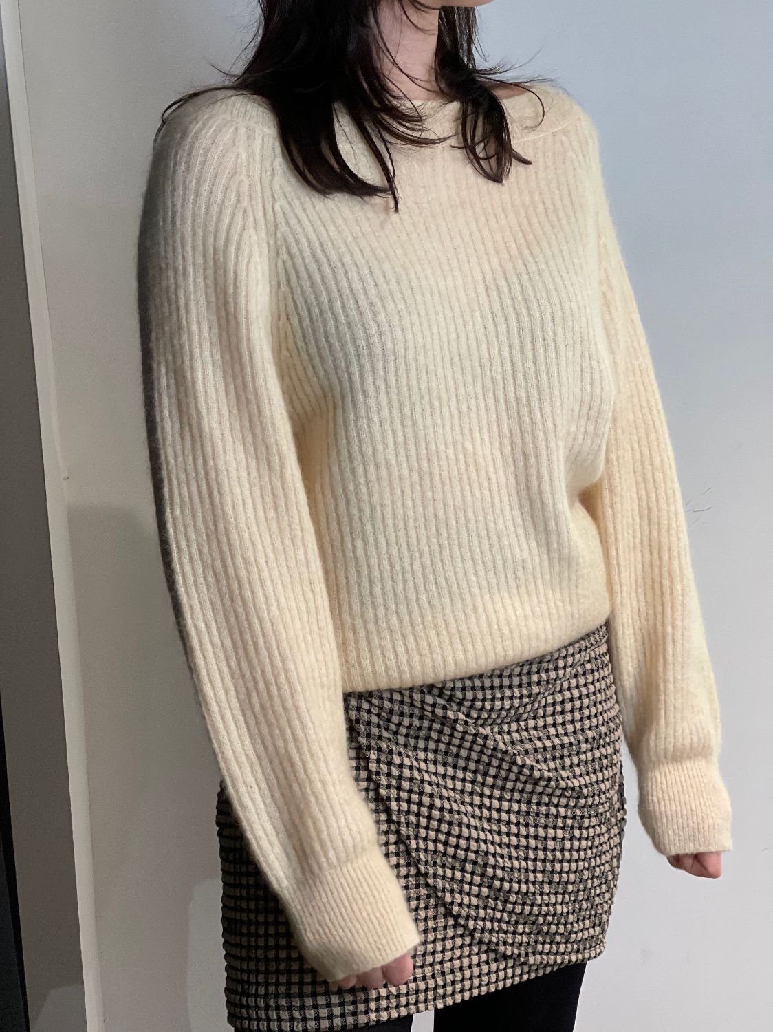 Materiaal:-34% mohair-34% wol-27% polyamide-5% elastaanAls u vragen over het product heeft, kunt u altijd contact met ons opnemen.